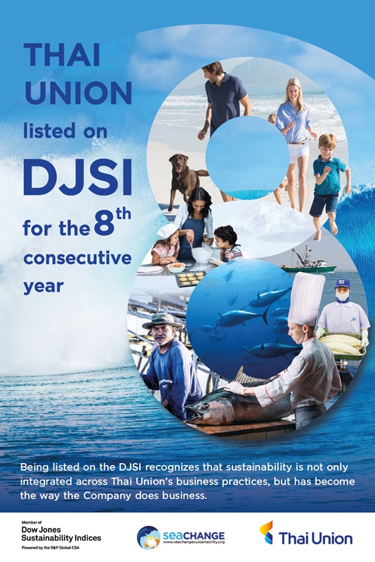 BANGKOK – November 15, 2021 – Thai Union Group PCL has been listed on the Dow Jones Sustainability Indices (DJSI) for the eighth consecutive year, recognition of the global seafood leader’s efforts to drive positive change across its business and the wider seafood sector.