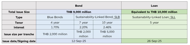 The transactions in September, totaling THB 19 billion, comprised a THB 10 billion package of sustainability-linked loans from a syndicate of leading banks and a THB 9 billion bond issuance. Strong market demand saw the issuance heavily oversubscribed, prompting the bond issuance’s upsizing from THB 7 billion to THB 9 billion.