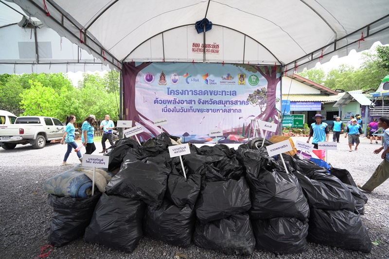 The activity brought together 200 participants, including employees from Thai Union Group, i-Tail Corporation PCL, and partners from Samut Sakhon City Development (Social Enterprise) Company Limited, the Department of Marine and Coastal Resources (DMCR), the Khok Kham Subdistrict Administrative Organization, the Samut Sakhon Provincial Disaster Prevention and Mitigation Office, the Samut Sakhon Provincial Cultural Office, and Wongpanit Ban Phaeo, a local recycling company. Volunteers from local communities, schools, and civic groups across Samut Sakhon also joined the effort. Together, participants collected 755 kilograms of waste, including plastic bottles and plastic bags, foam containers, glass bottles, and lightbulbs.
