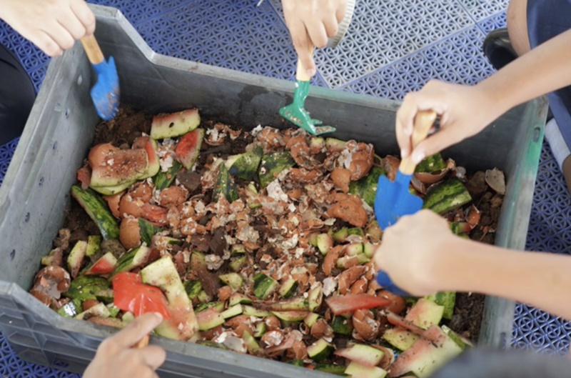 The three-hour workshop provided students with knowledge about the food waste challenges in Thailand and how they can help to manage food waste, including composting. The students also learned about the importance of eating nutritionally rich food to help stimulate the brain, build muscles and strengthen bones.