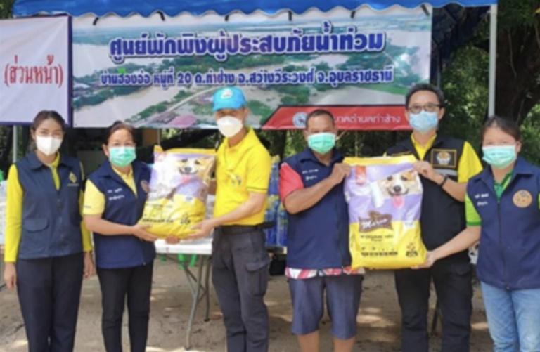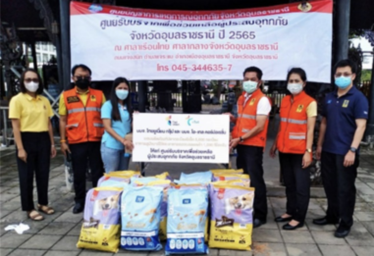 Ubon Ratchathani – October 14, 2022 ─ Thai Union Group PCL. and i-Tail Corporation PCL. have donated 5,000 cans of SEALECT products, 700 kilograms of MARVO hard dog food and 300 kilograms of BELLOTA hard cat food to support those impacted by flooding in Ubon Ratchathani Province. The products were provided to the Department of Disaster Prevention and Mitigation Ubon Ratchathani Province at the Flood Donation Centre in Ubon Ratchathani Provincial Hall. The donations, made as part of Thai Union’s ongoing humanitarian assistance under its Thai Union cares program, will be distributed to people and their pets, along with stray cats and dogs, affected by the flooding.